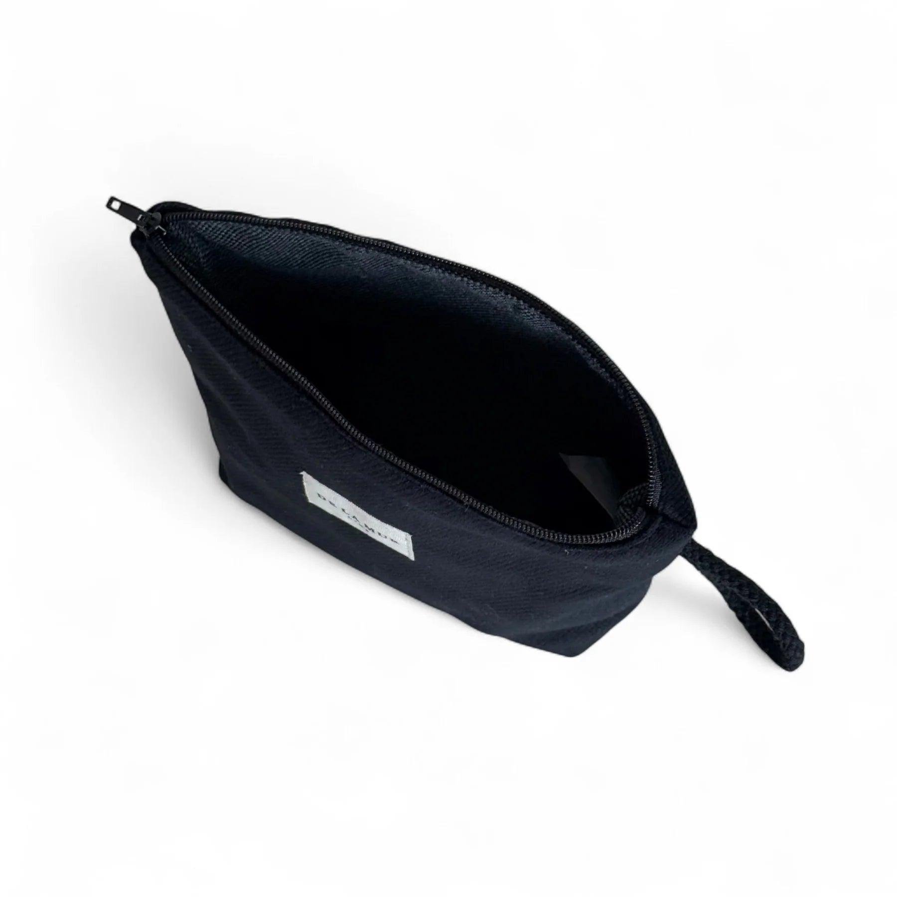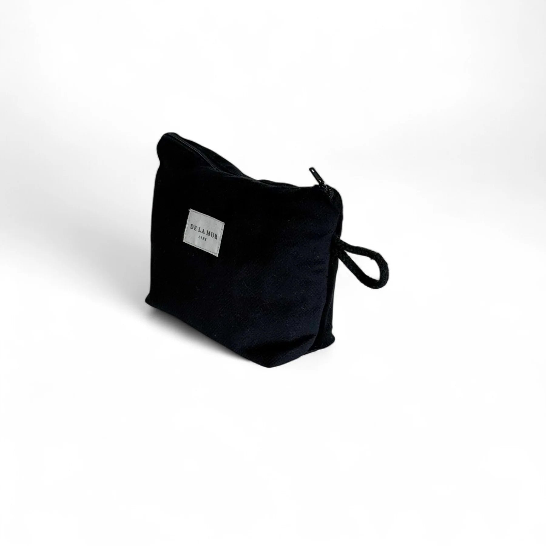 Deze Beauty Bag van de La Mur Line, ook wel toilettas of make-up tas genoemd, is uitgevoerd in een dikke zwarte fluwelen stof.