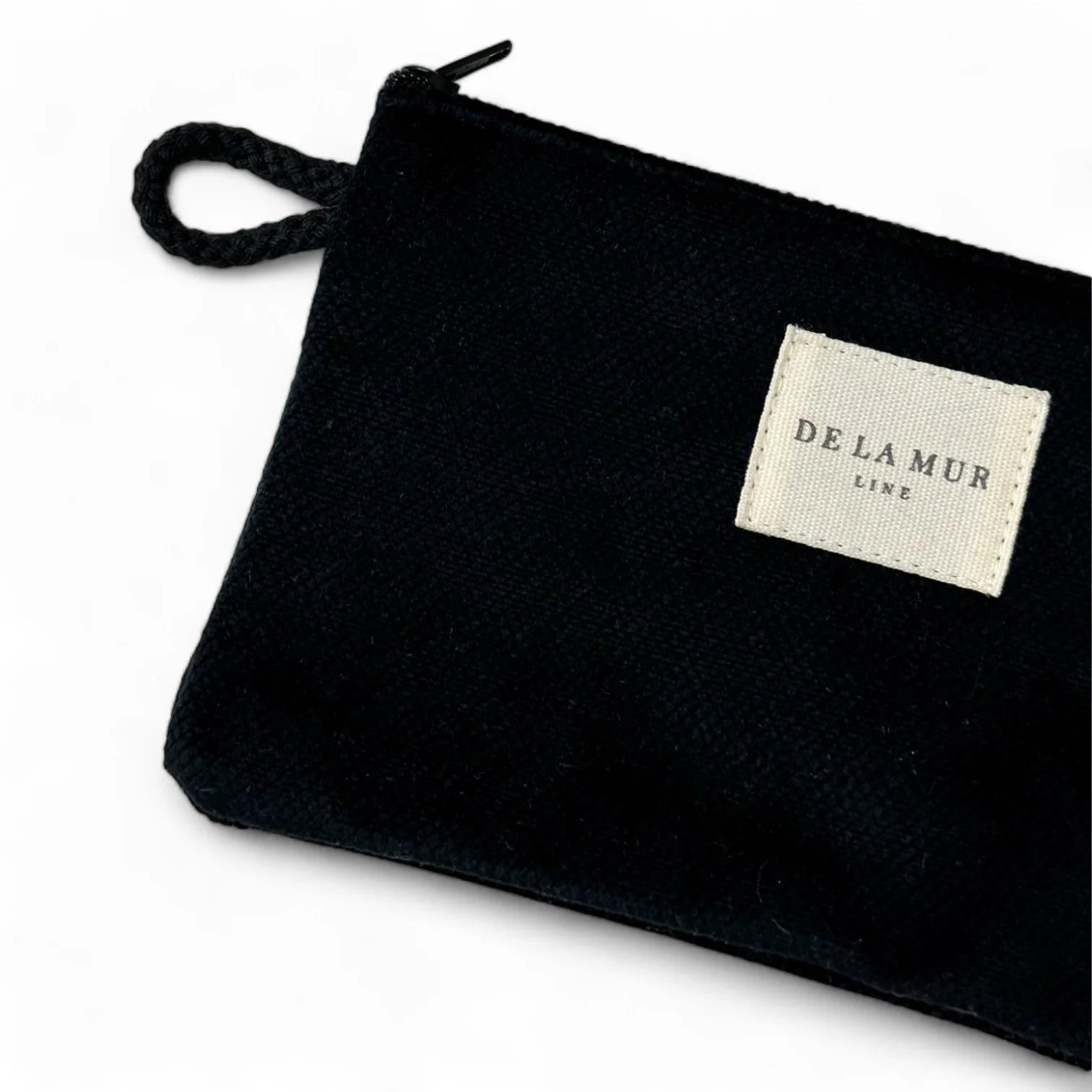 Dit leuke en compacte make up tasje van de La Mur Line is uitgevoerd in een dikke zwarte fluwelen stof.