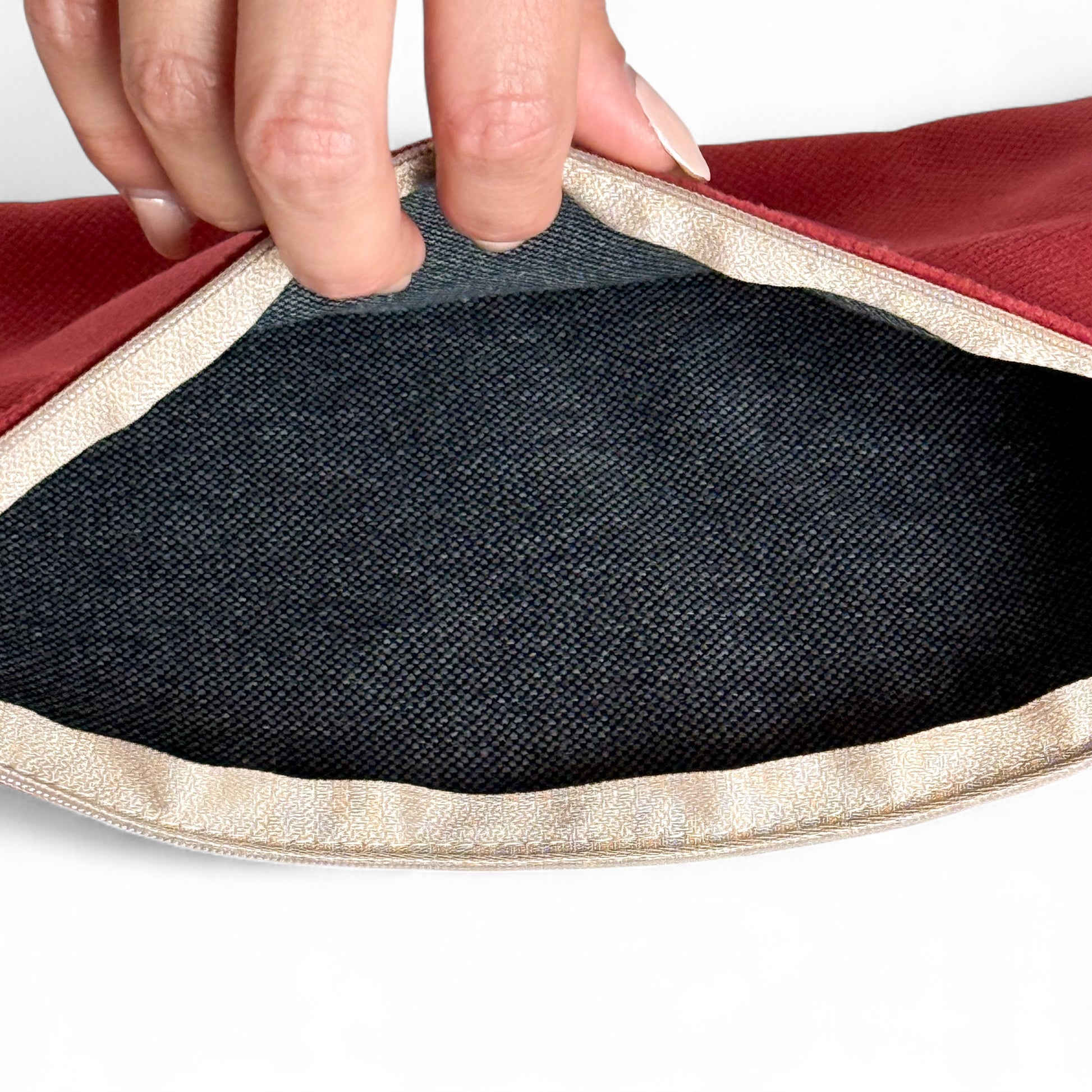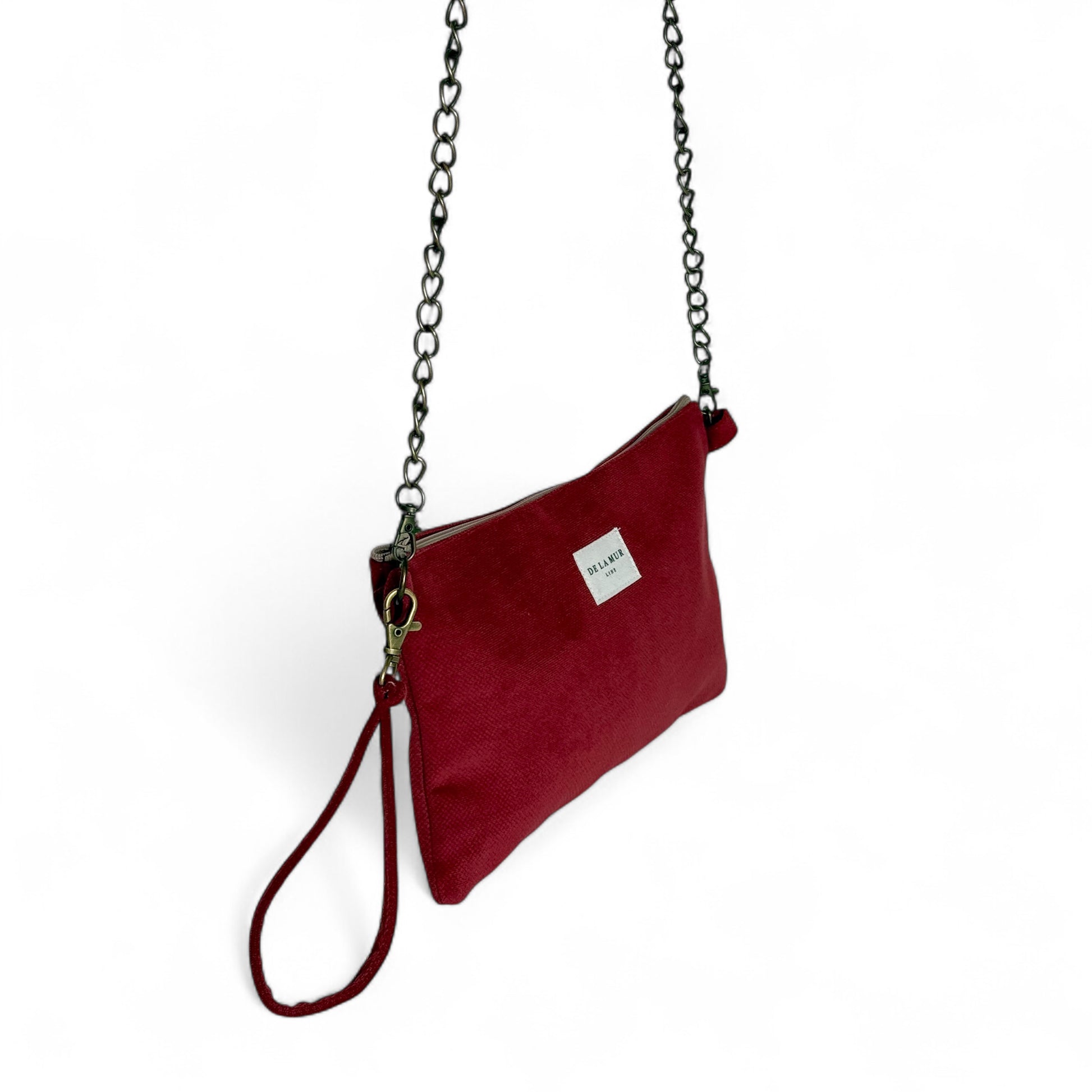 Dit charmante handtasje van de La Mur Line, ook wel avondtasje genoemd, is uitgevoerd in een dikke bordeauxrode fluwelen stof.