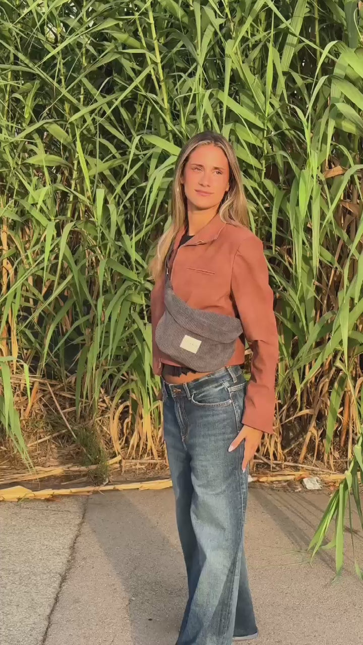 Dé musthave in je tassencollectie: de heuptas! Dit hippe heuptasje van de La Mur Line, ook wel fanny pack genoemd, is uitgevoerd in een donkergrijze/ antraciete corduroy ribstof.