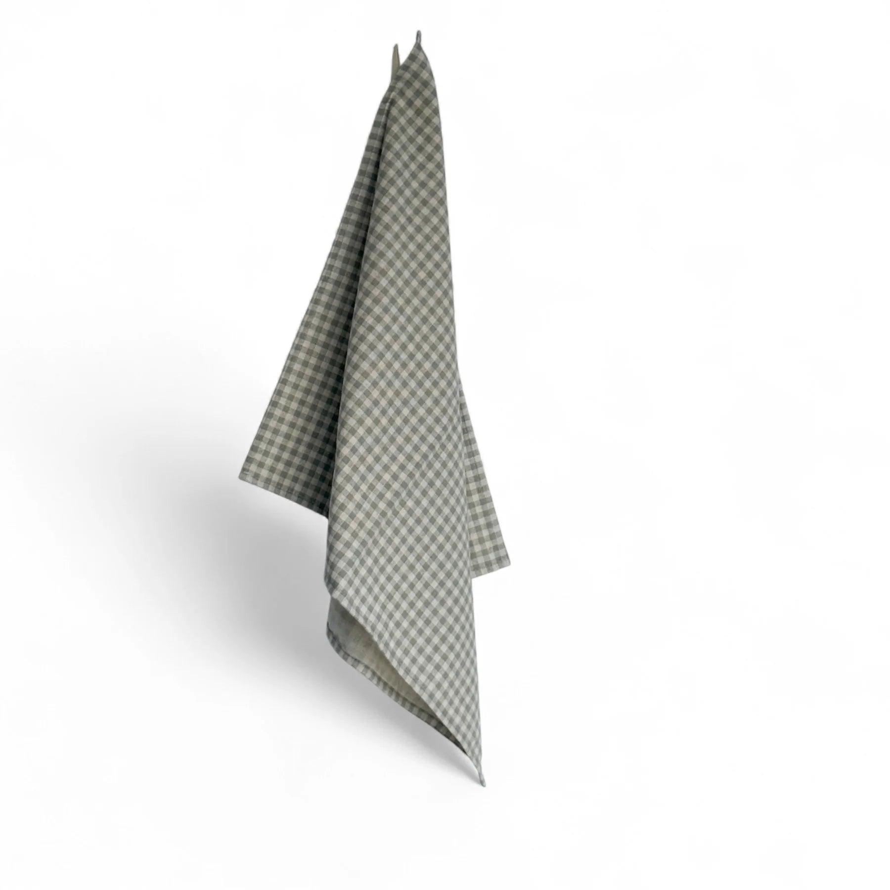 Deze keukendoek van De La Mur Line is gemaakt van een half-panama stof met een pastelgroene Vichy-ruitjesprint.