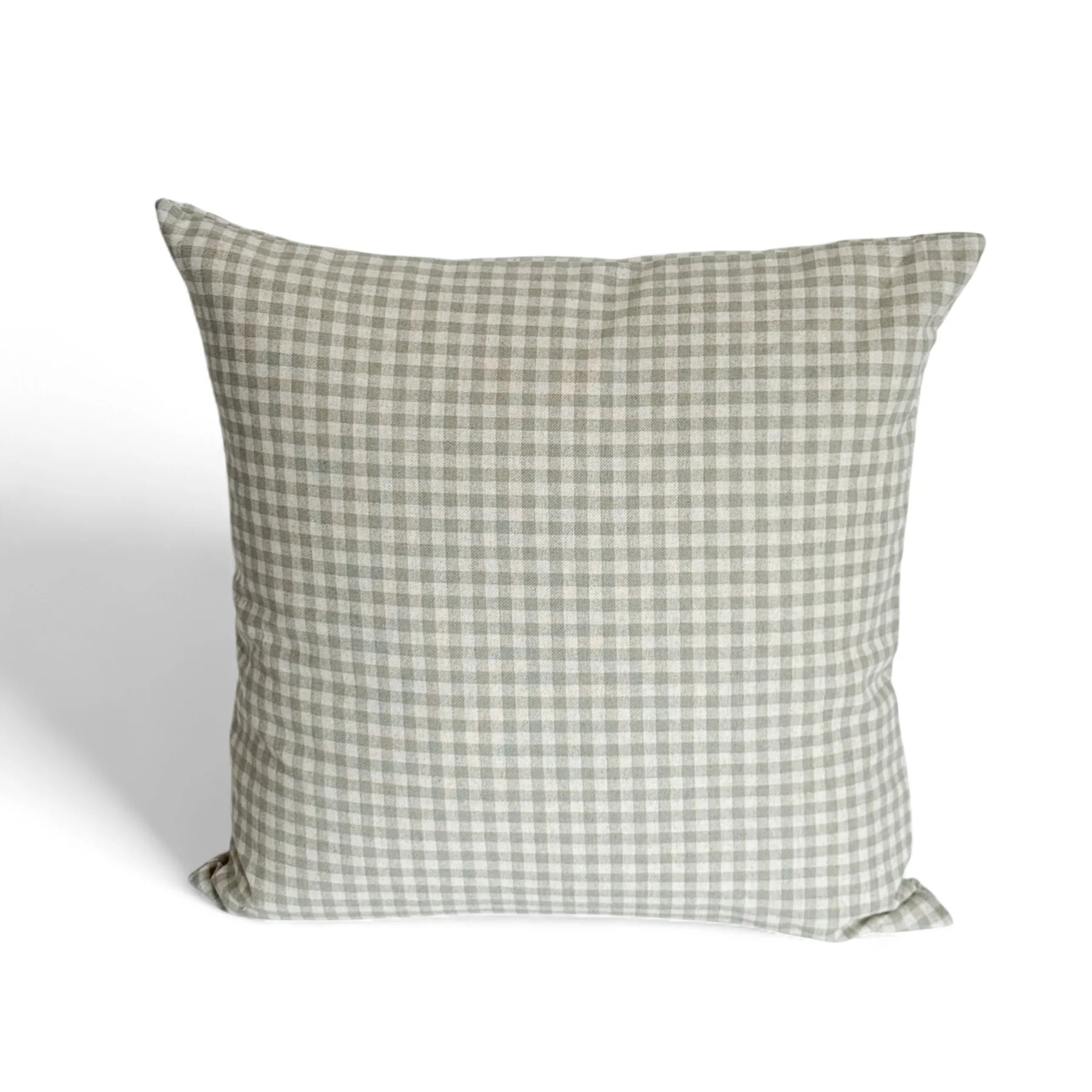 Deze sierkussenhoes van De La Mur Line is gemaakt van een half-panama stof met een pastelgroene Vichy-ruitjesprint.