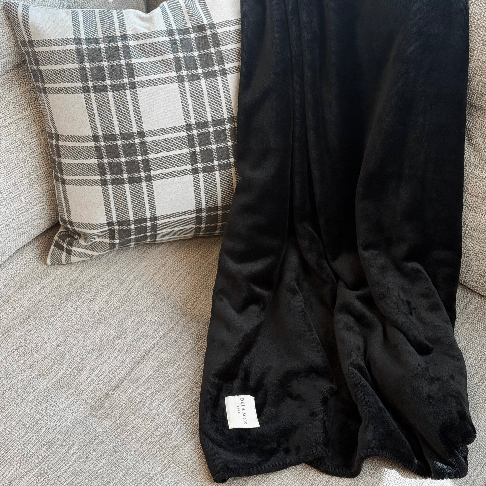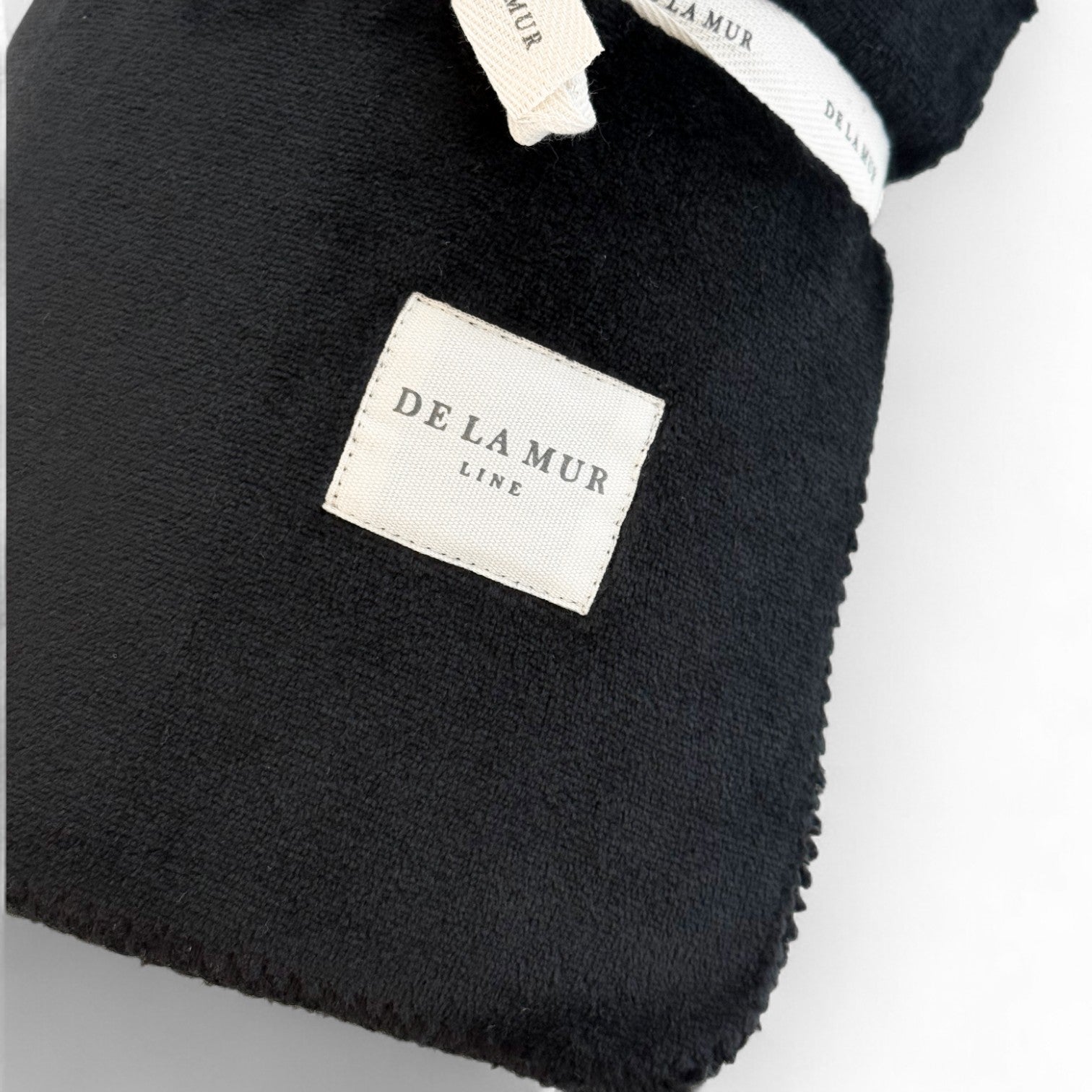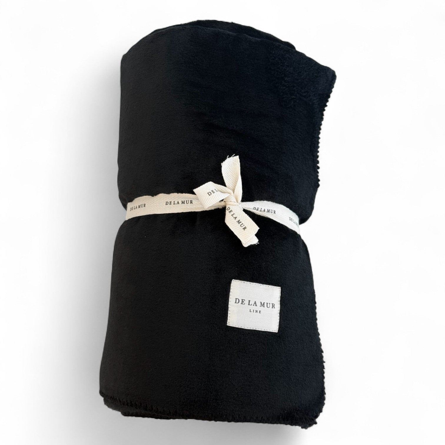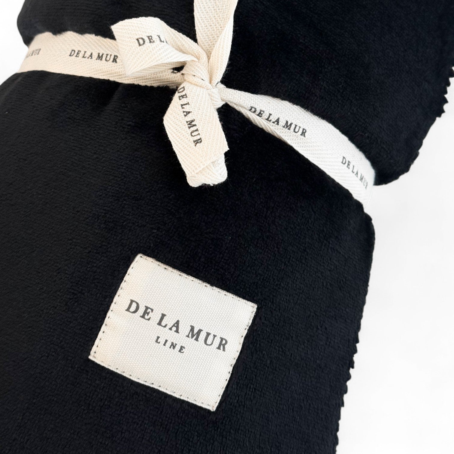 Deze heerlijke zachte plaid van De La Mur Line is uitgevoerd in een zwarte pluche stof.