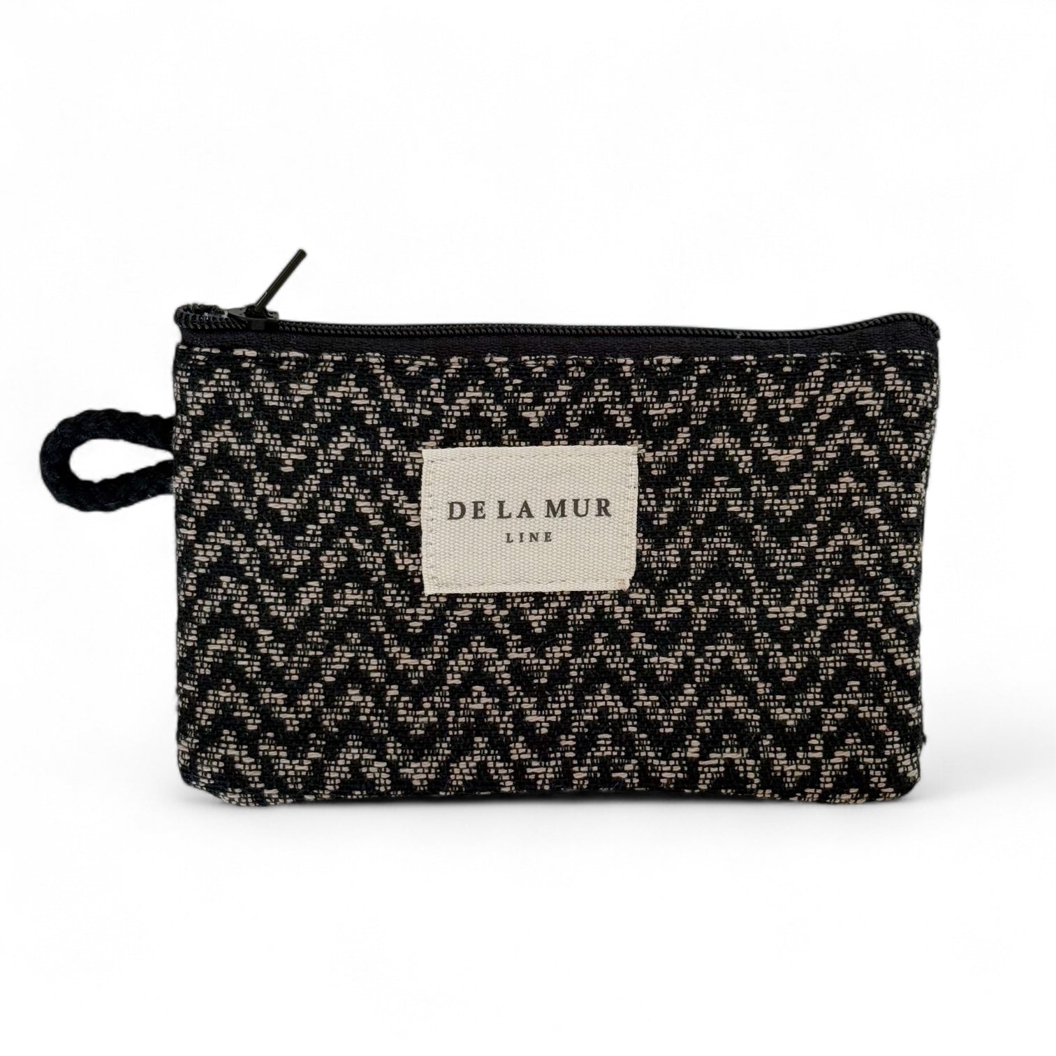 Dit leuke portemonneetje van de La Mur Line is uitgevoerd in een dikke jacquardstof met een zigzagpatroon in zwart en beige.