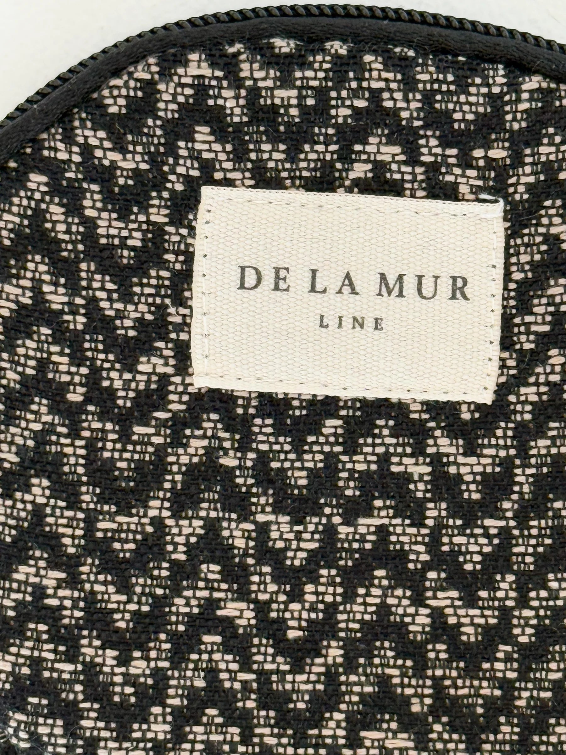 Dit speelse, ronde portemonneetje van de La Mur Line is uitgevoerd in een dikke jacquardstof met een zigzagpatroon in zwart en beige.