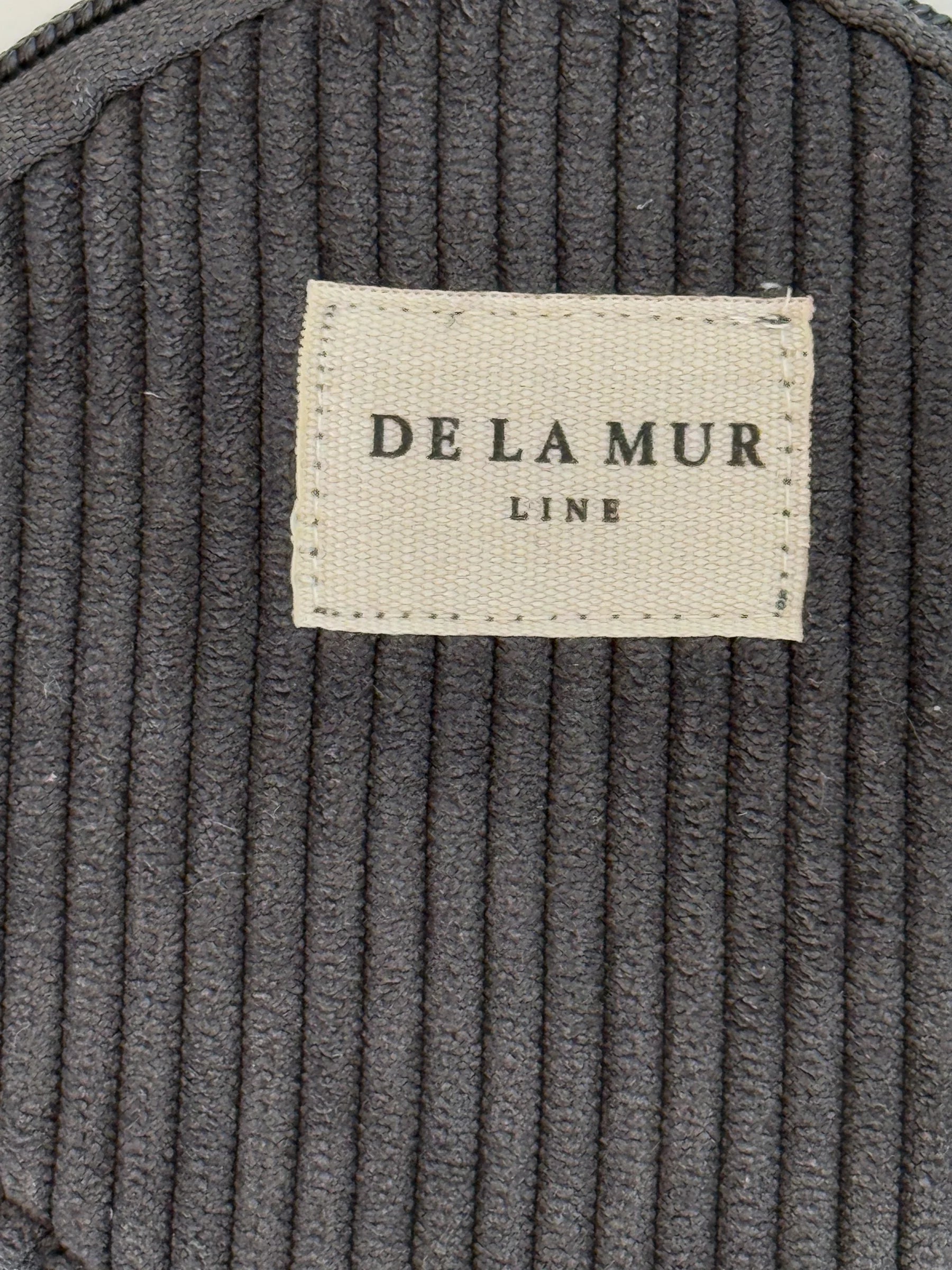 Dit speelse, ronde portemonneetje van de La Mur Line is uitgevoerd in een antraciete corduroy ribstof.