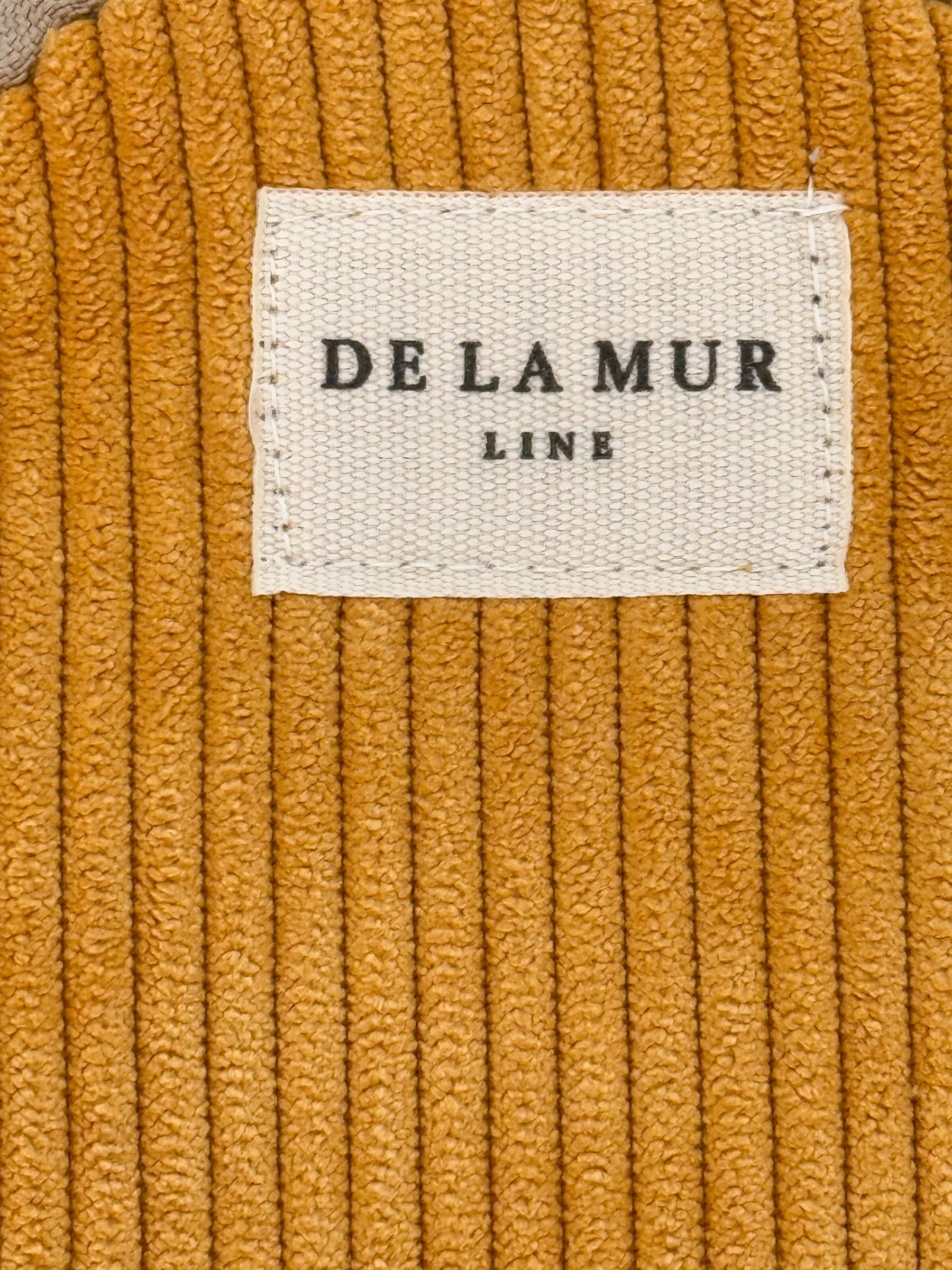 Dit speelse, ronde portemonneetje van de La Mur Line is uitgevoerd in een mosterdgele corduroy ribstof.