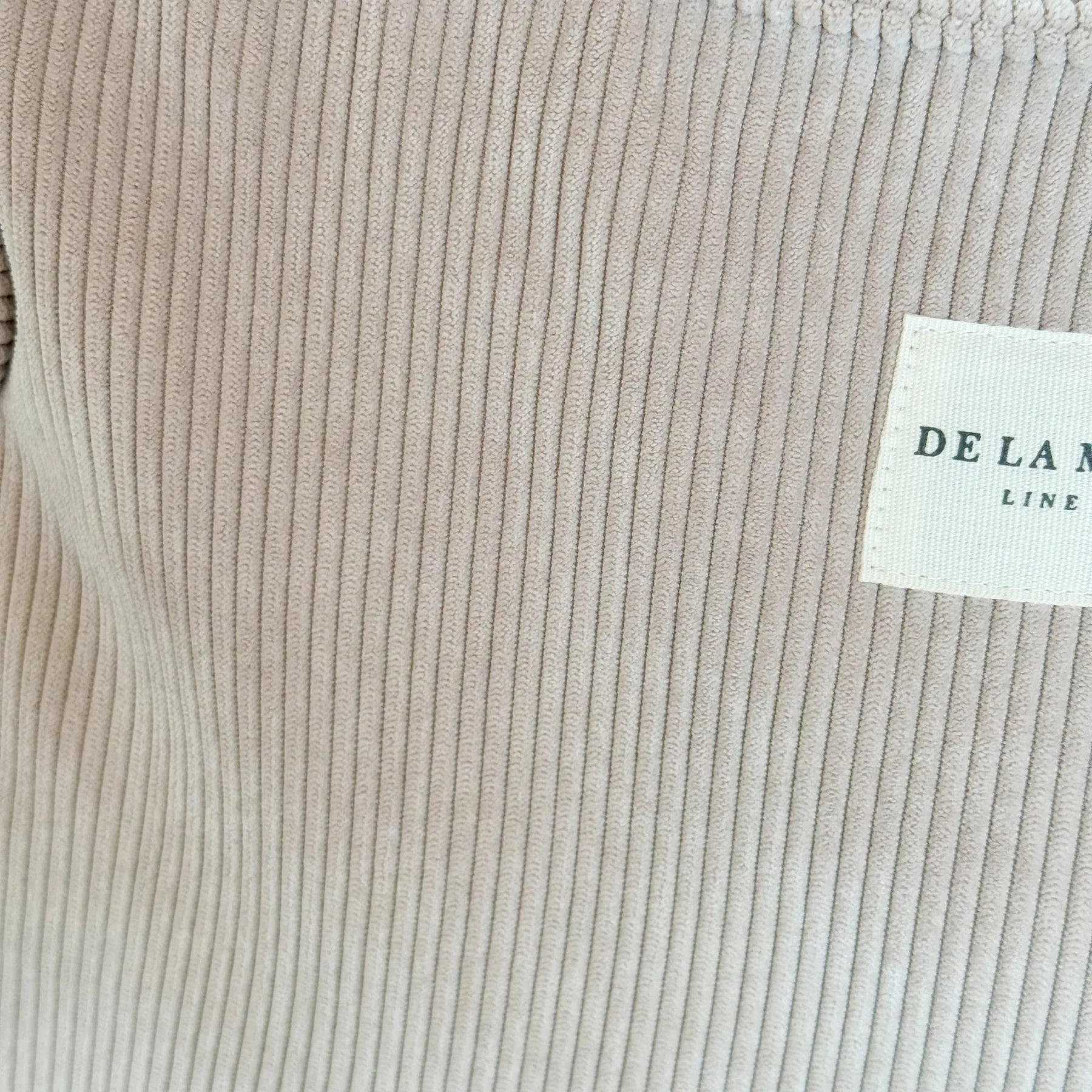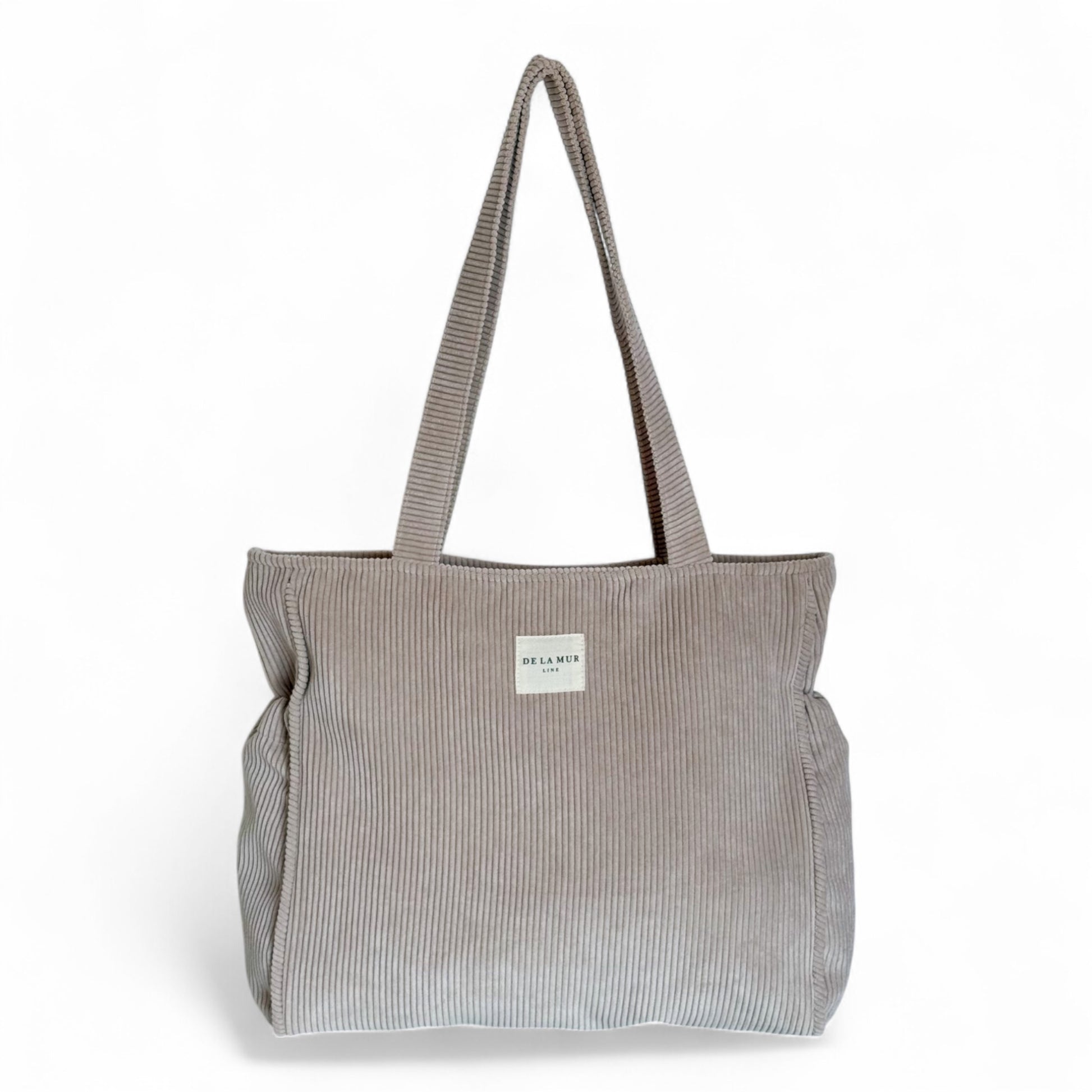 Deze rechthoekige Shopper van De La Mur Line is uitgevoerd in een beige corduroy ribstof.