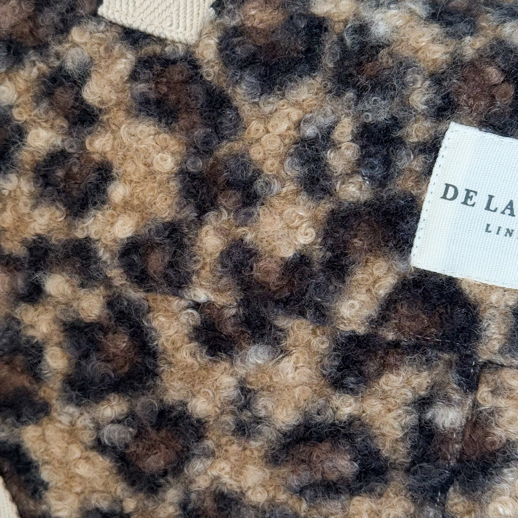 Deze grote schoudertas van de La Mur Line is gemaakt van een dikke teddystof met een luipaardprint.