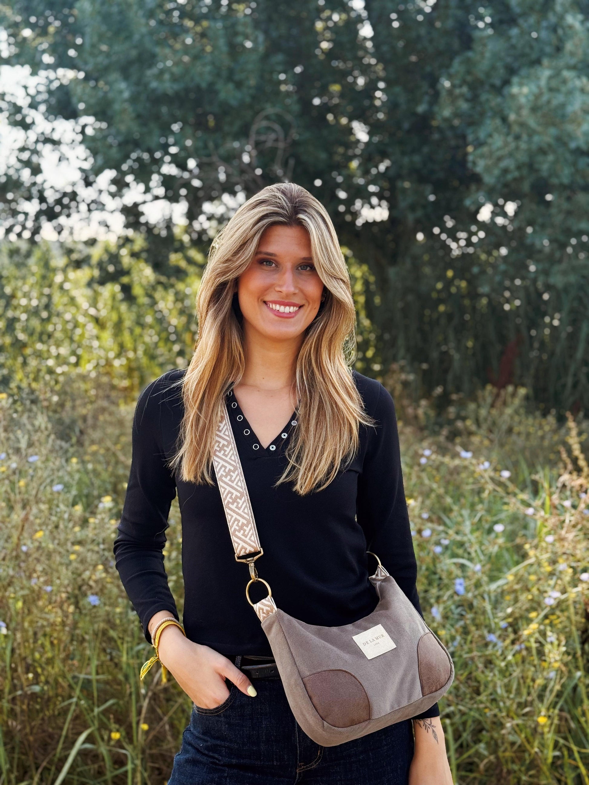 De tas heeft een verstelbare schouderband van katoen met een crème- en beigekleurig patroon. Je draagt de tas comfortabel crossbody of nonchalant over de schouder - ideaal voor zowel alledaagse uitstapjes als speciale gelegenheden.