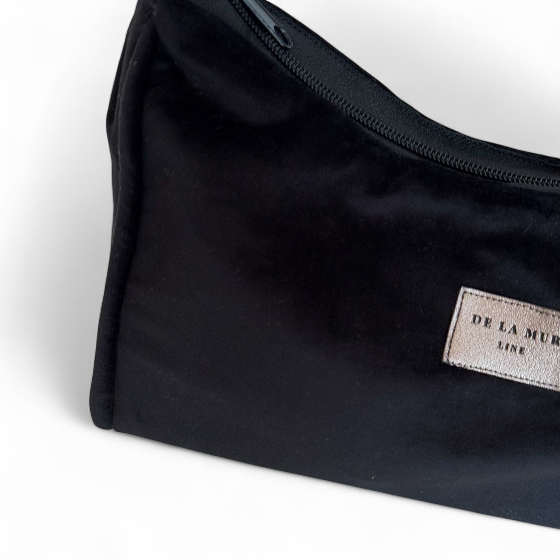 Deze kleine schoudertas uit de gelimiteerde Night Edition van de La Mur Line is een stijlvolle eyecatcher. Dit elegante tasje is uitgevoerd in een zwarte fluwelen stof.