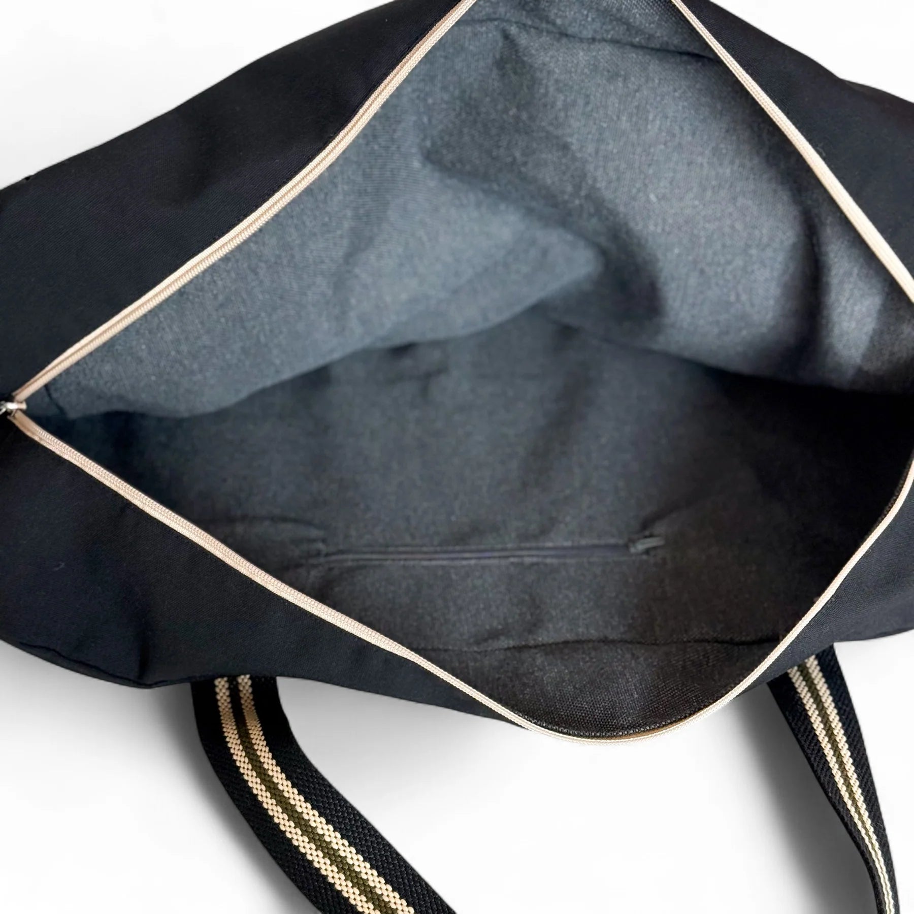 Deze stevige en ruime sporttas van de La Mur Line, ook wel duffeltas of duffle bag genoemd, is uitgevoerd in een dikke, zwarte effen stof.