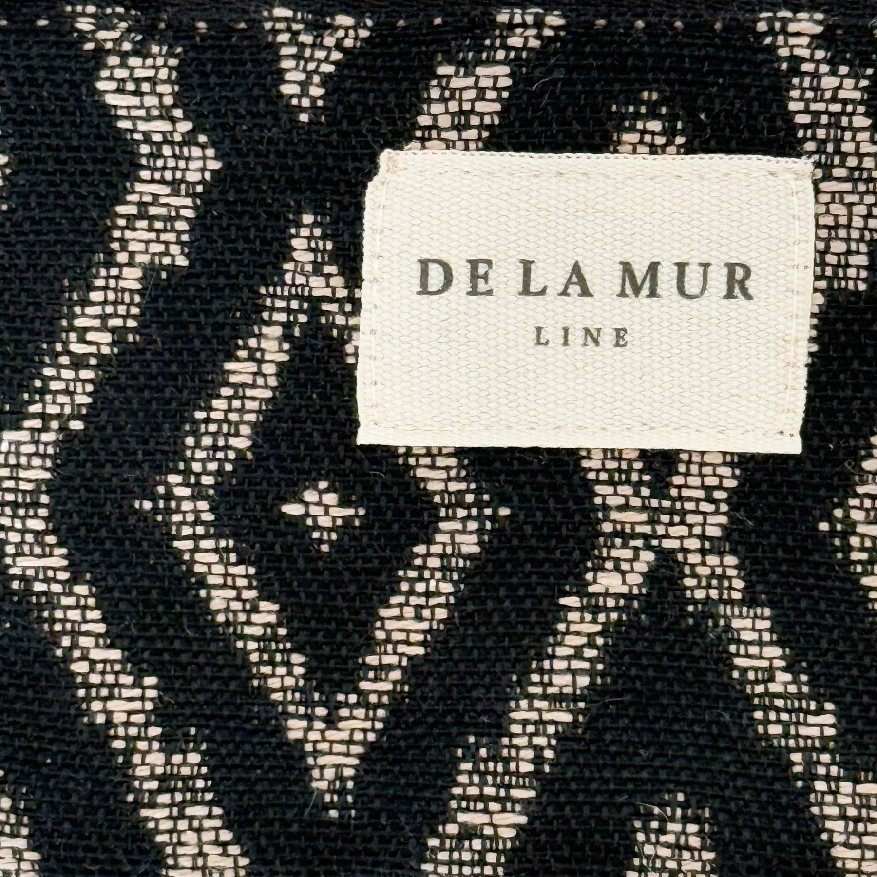 Dit leuke telefoontasje van de La Mur Line is uitgevoerd in een dikke jacquardstof met een beige, grafisch ruitpatroon op een diepzwarte achtergrond.